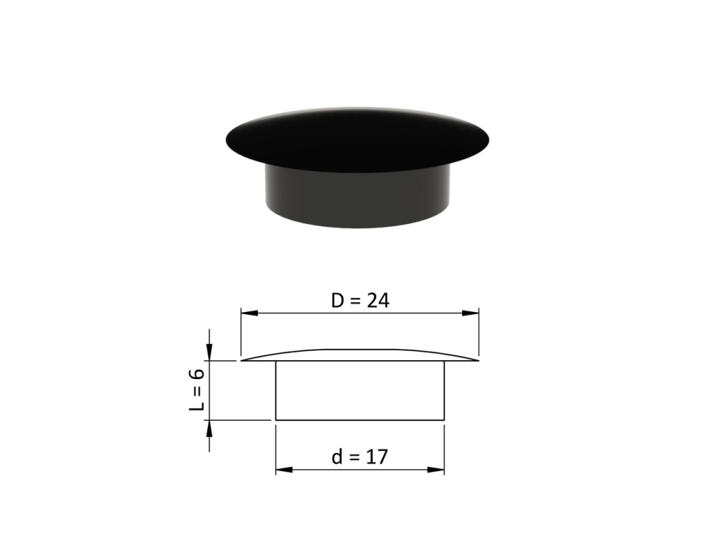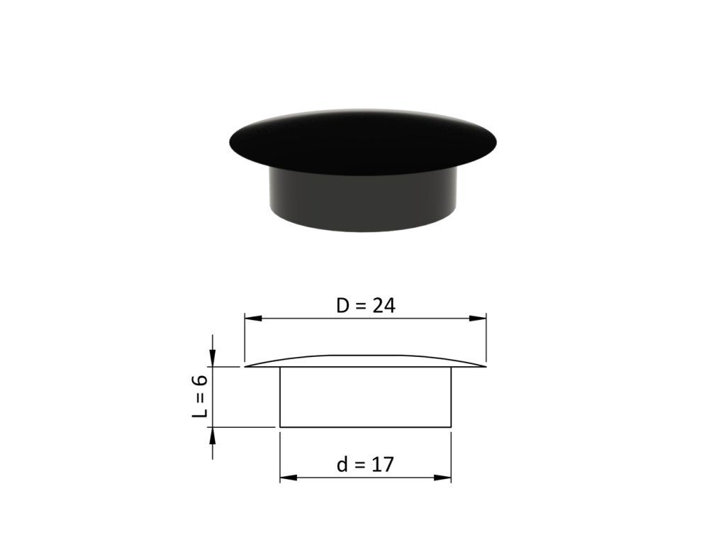 Vnútorná krytka guľatá ø 24 mm, otvor ø 17 mm, čierna, plast