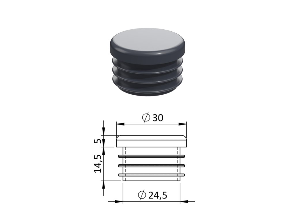 Vnútorná krytka guľatá ø 30 mm, plastová, antracit
