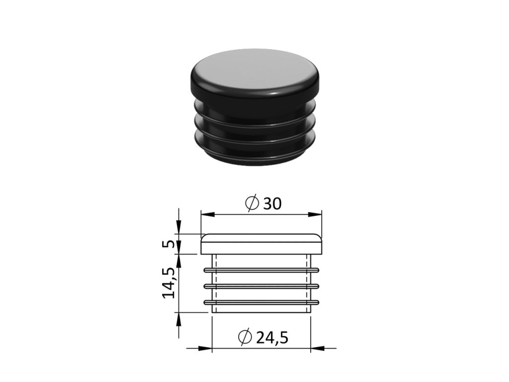 Vnútorná krytka guľatá ø 30 mm, plastová, čierna