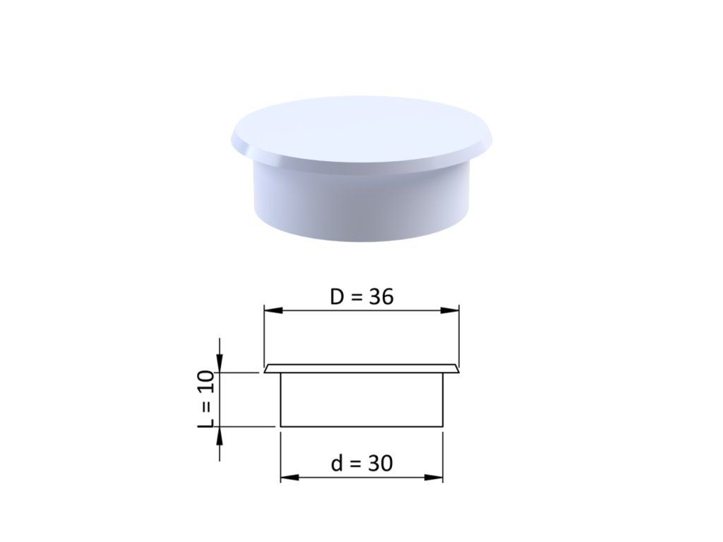 Vnútorná krytka guľatá ø 36 mm, otvor ø 30 mm, biela, plast