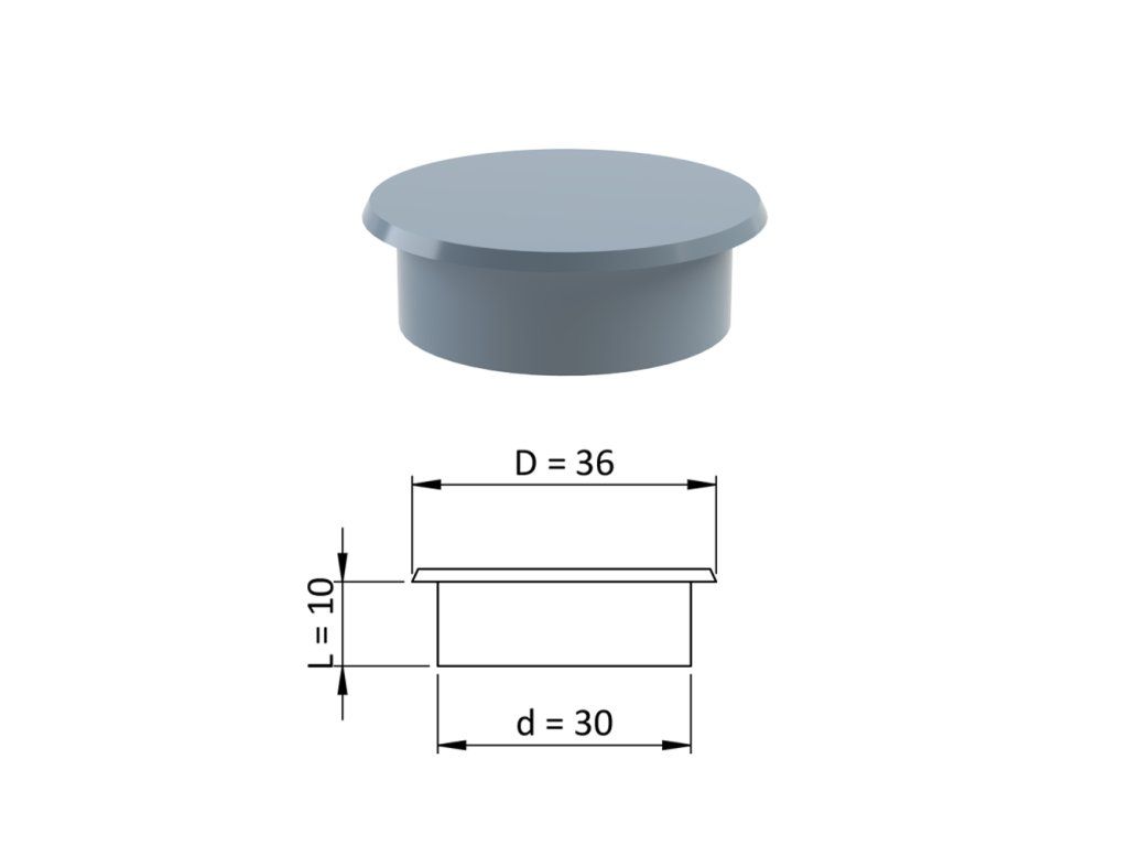 Vnútorná krytka guľatá ø 36 mm, otvor ø 30 mm, sivá, plast