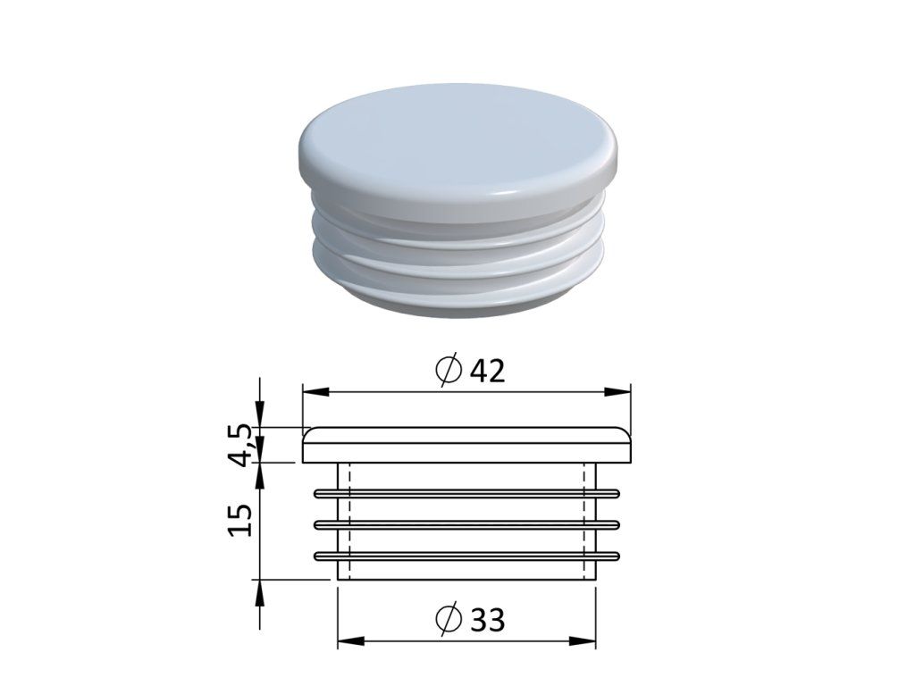 Vnútorná krytka guľatá ø 42 mm, plastová, biela