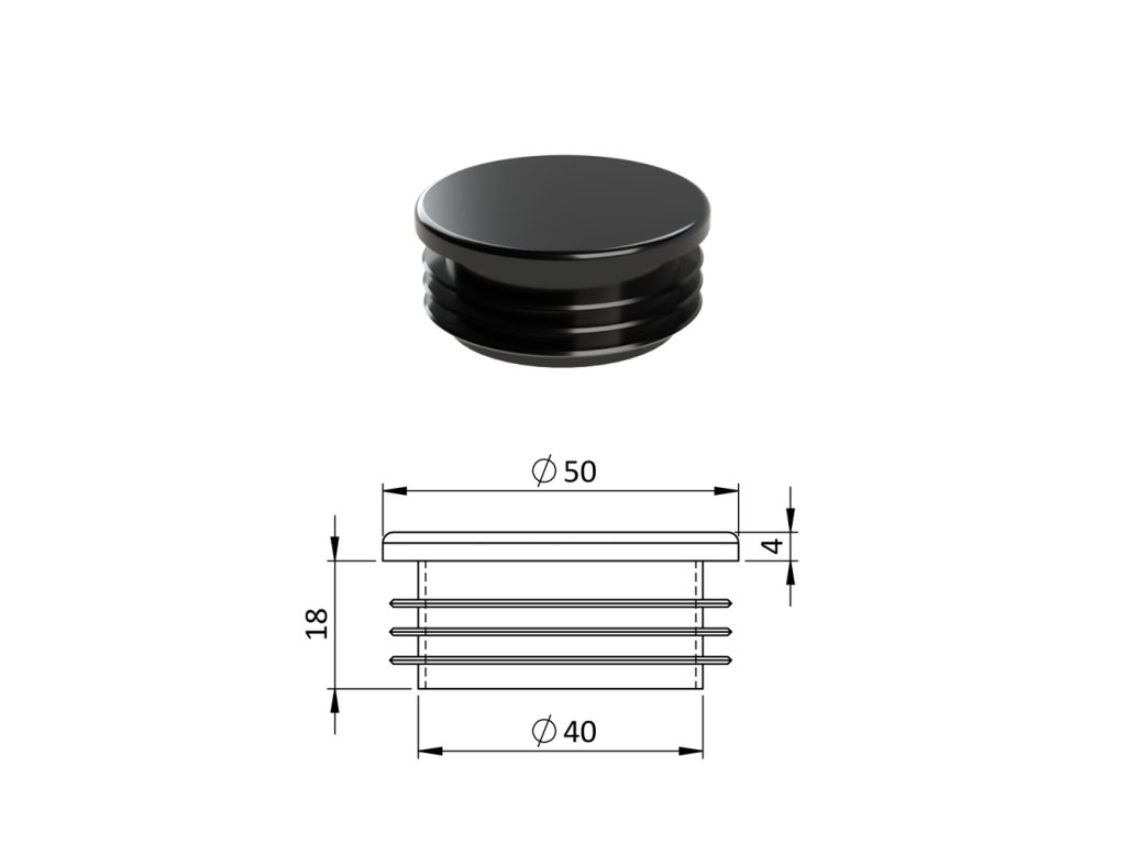 Vnútorná krytka guľatá ø 50 mm, plastová, čierna