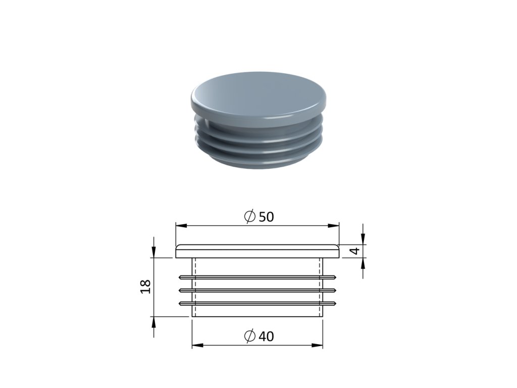 Vnútorná krytka guľatá ø 50 mm, plastová, sivá