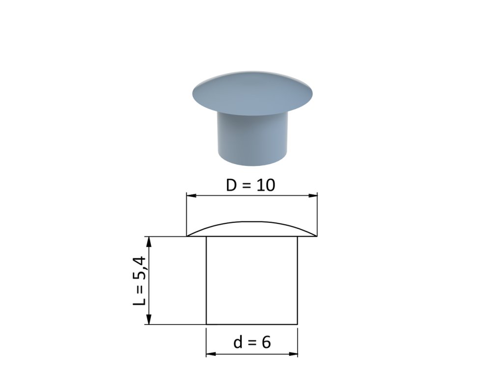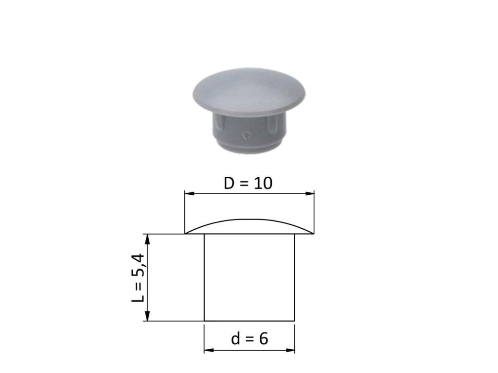 Vnútorná plastová krytka guľatá ø 10 mm, otvor ø 6 mm