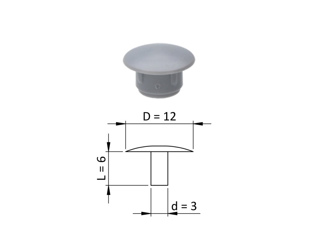 Vnútorná plastová krytka guľatá ø 12 mm, otvor ø 3 mm