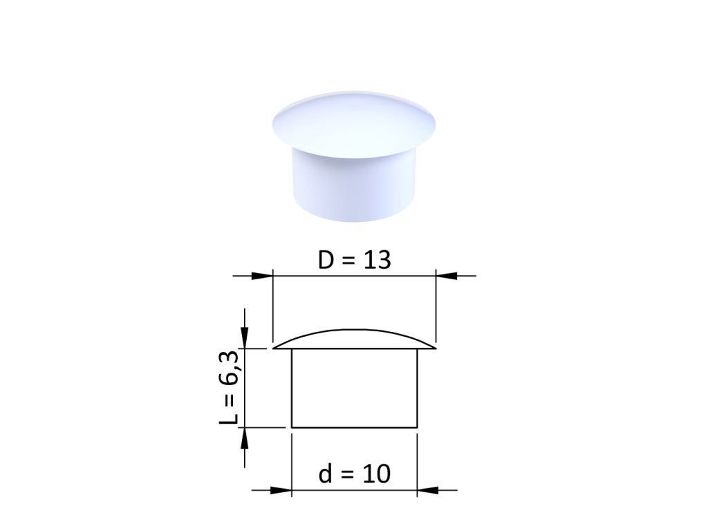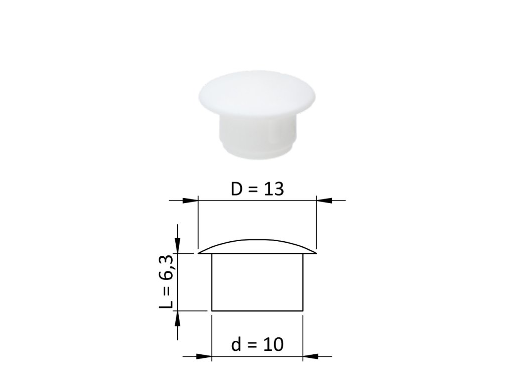 Vnútorná plastová krytka guľatá ø 13 mm, otvor ø 10 mm