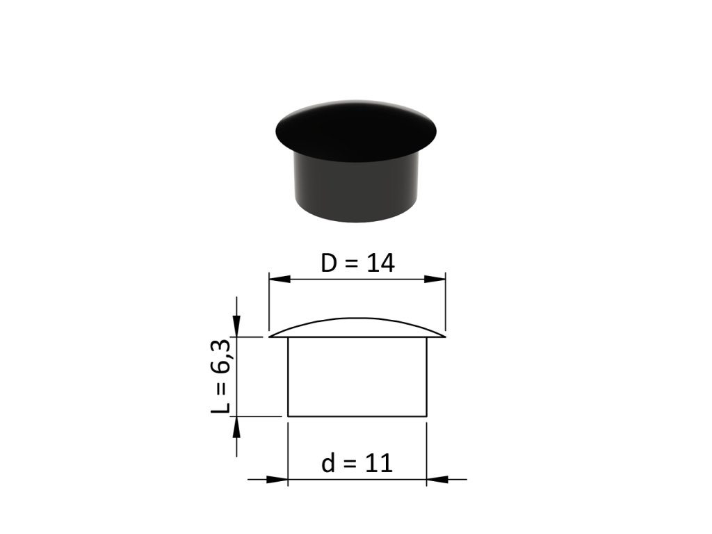 Vnútorná plastová krytka guľatá ø 14 mm, otvor ø 11 mm