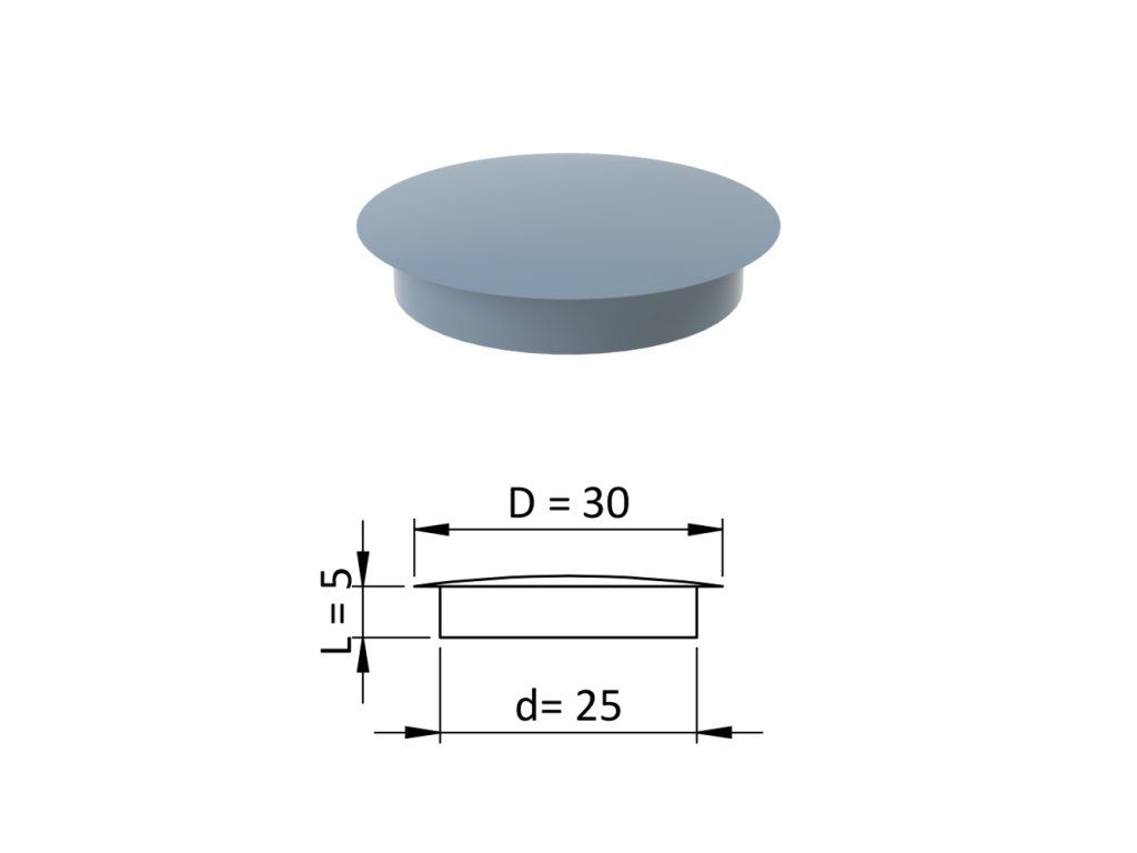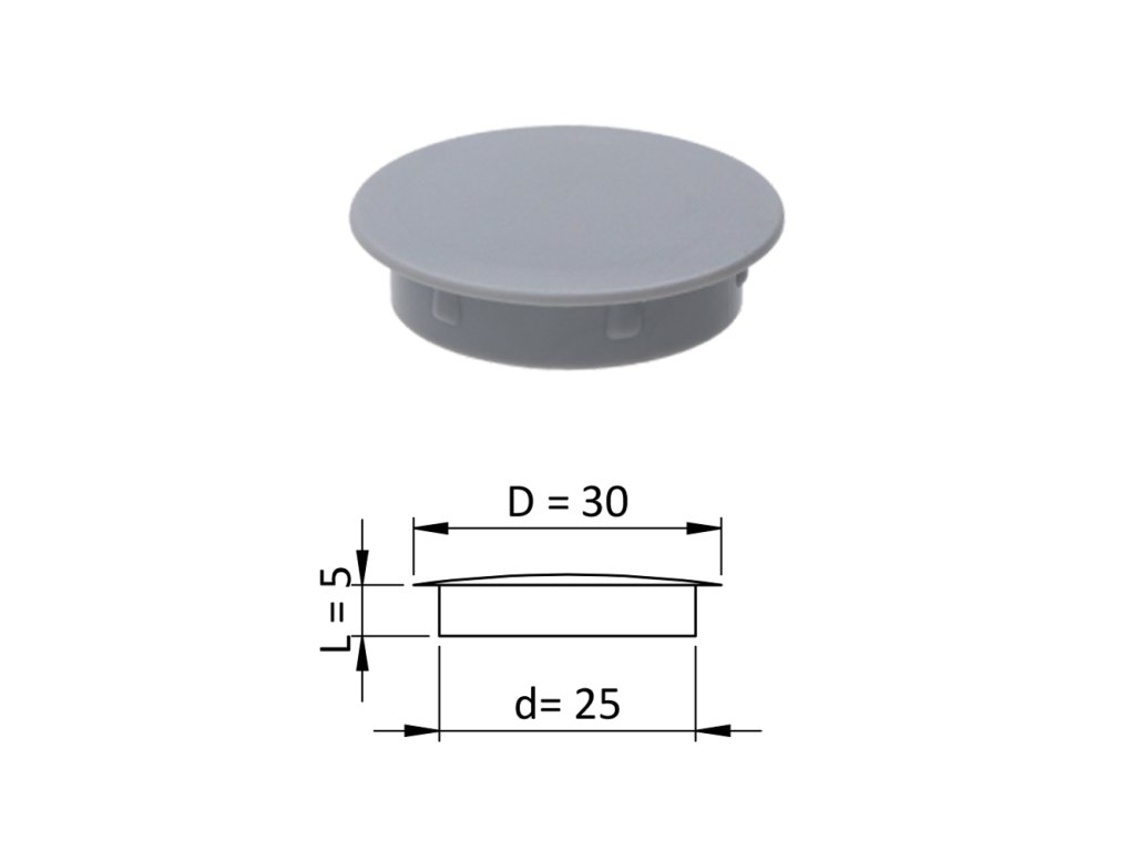 Vnútorná plastová krytka guľatá ø 30 mm, otvor ø 25 mm