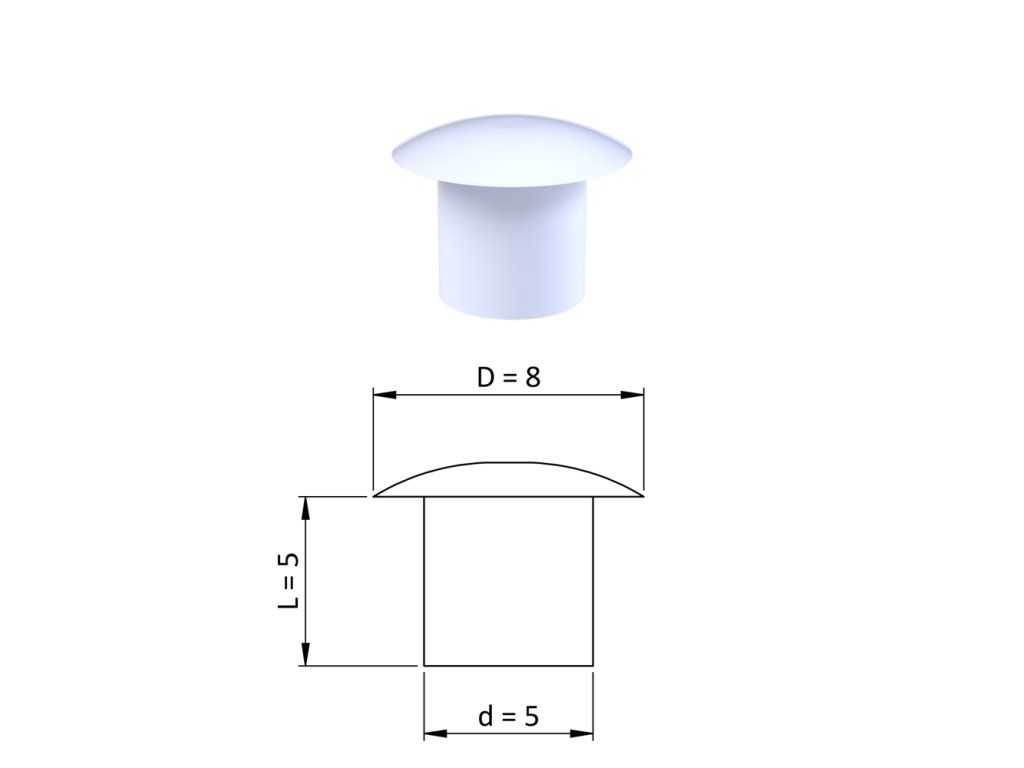 Vnútorná plastová krytka guľatá ø 8 mm, otvor ø 5 mm
