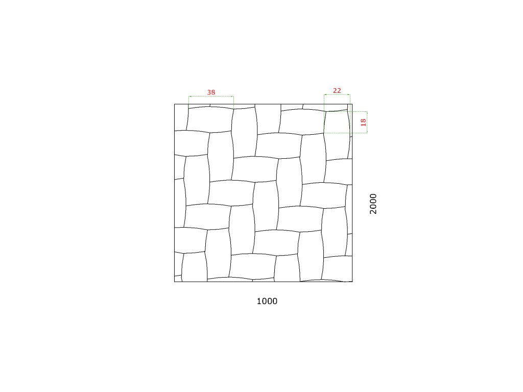 plech oceľový pozinkovaný DX51D, rozmer 2000x1000x1,2mm +/- 0.5%, lisovaný vzor - PLETENINA 38x22mm, 3D efekt