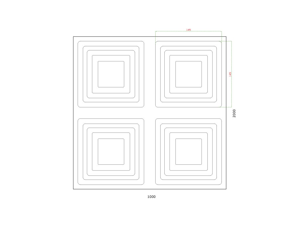 plech oceľový pozinkovaný DX51D, rozmer 2000x1000x1,2mm +/- 0.5%, lisovaný vzor - ŠTVOREC 145x145mm, 3D efekt