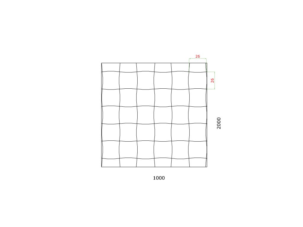 plech oceľový S235J bez povrchovej úpravy, rozmer 2000x1000x1,1mm +/- 0.5%, lisovaný vzor pletenina 26x26mm, 3D efekt