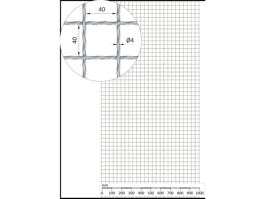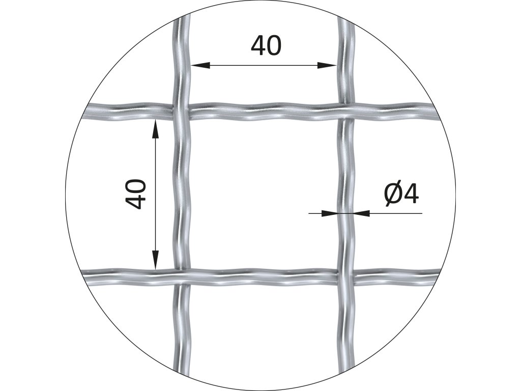 Rebierkové pletené sito - rovné, oko: 40x40mm, priemer pletiva 4mm, rozmer 1000x2000mm, žiarovo pozinkované