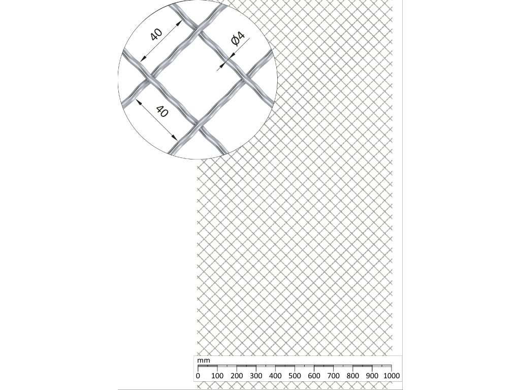 Rebierkové pletené sito - vzor Diamant, oko: 40x40mm, priemer pletiva 4mm, rozmer 1000x2000mm, žiarovo pozinkované