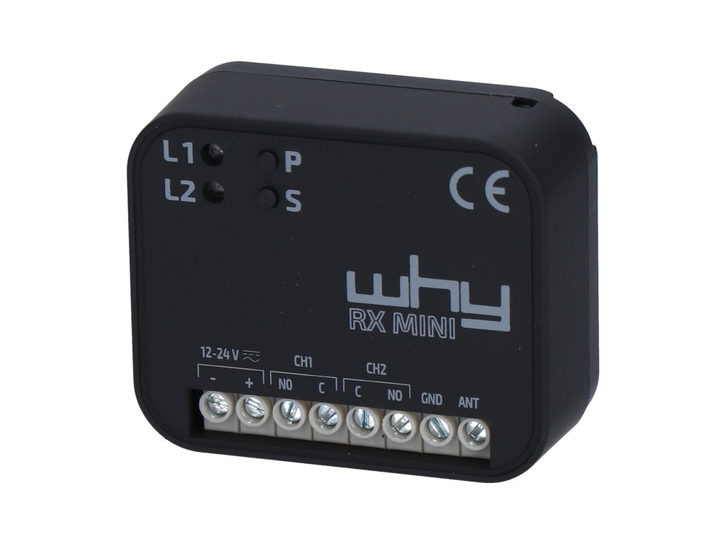Univerzálny prijímač WHY PRO, podporuje súčasne frekvenciu 433,92MHz a 868,46MHz. Taktiež pevný aj plávajúci kód súčasne.Disponuje pamäťou: 80 kódov (Why Evo2, Why 433 a Why 433 lite) spolupracuje s NICE aj KEY vysialačmi a samozrejme s radou iných značiek.