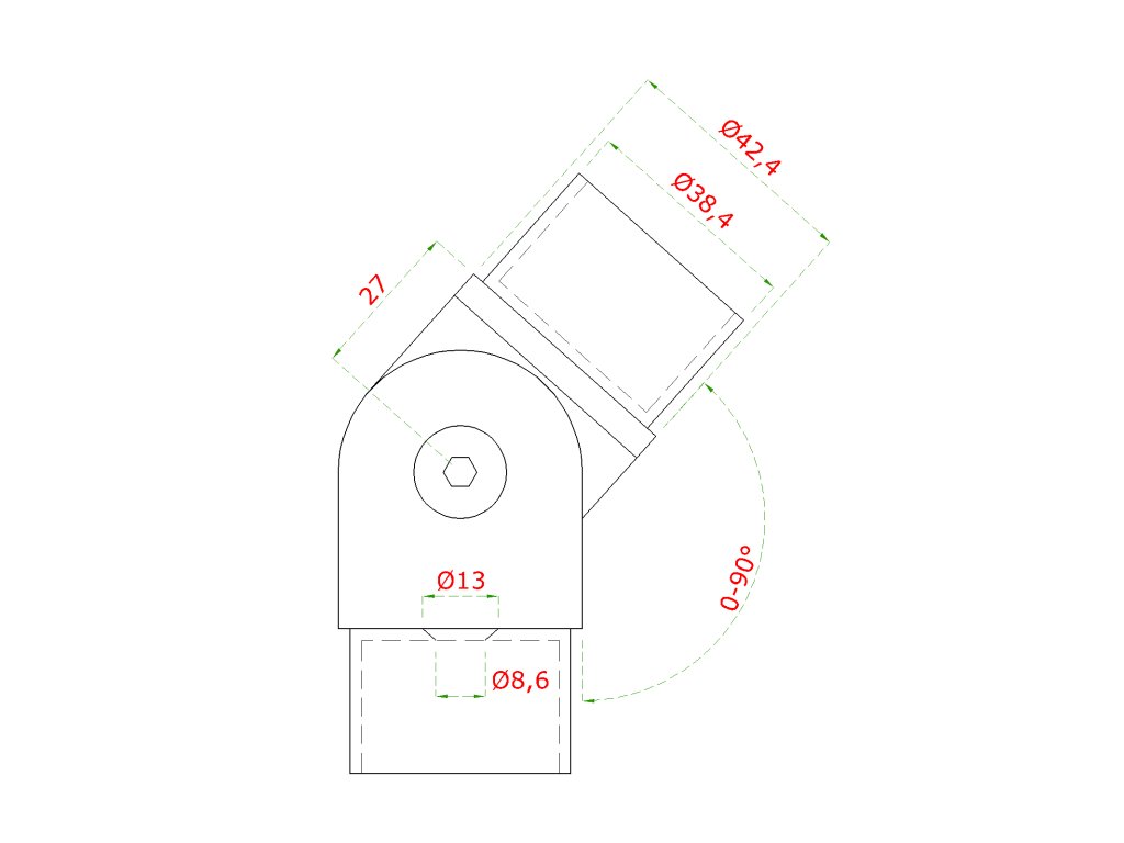 spojka nastaviteľná s kĺbom na trubku ø 42.4 mm so skrutkou M8 na upevnenie do jaklu alebo trubky, brúsená nerez K320 /AISI304
