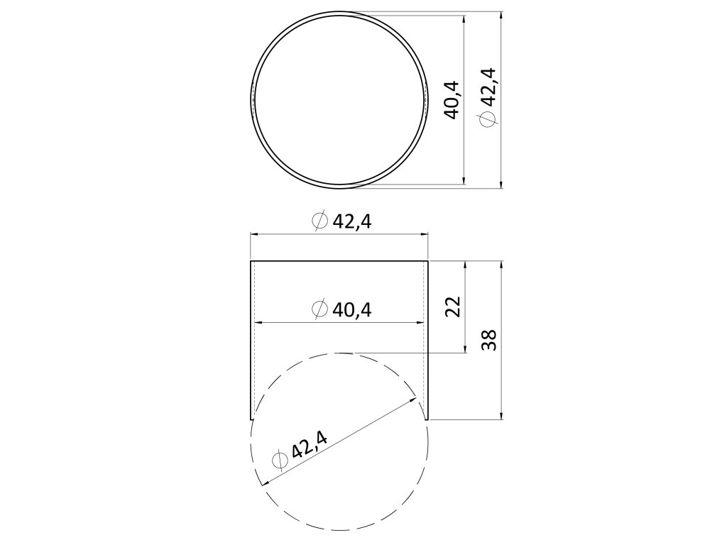 spojka - trubka ø 42.4mm na trubku ø 42,4mm, brúsená nerez K320 /AISI304