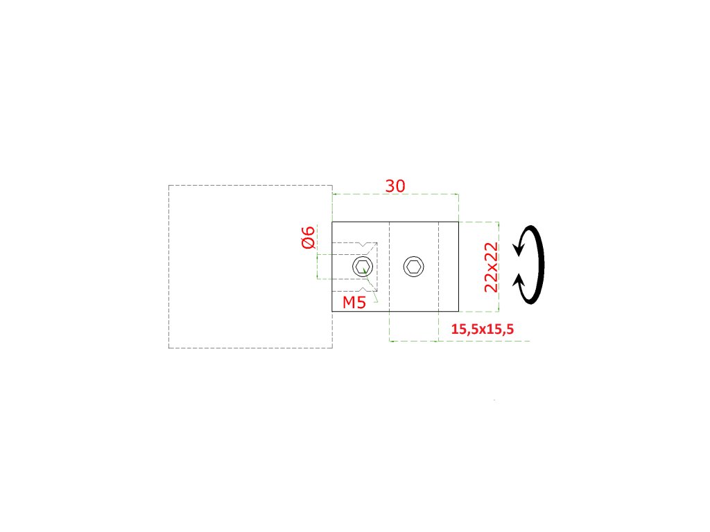 Držiak štvorhranného profilu 15x15mm, plochý, (30x22mm), brúsená nerez K320 /AISI304