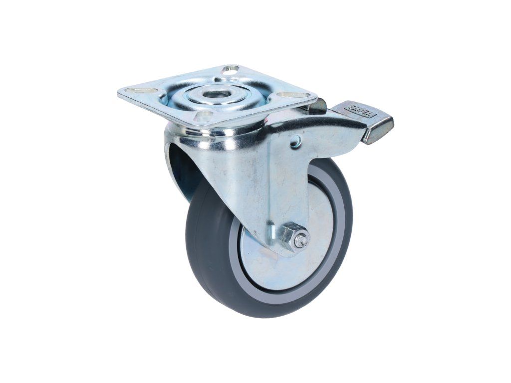 Otočné koliesko s platňou s behúňom zo syntetickej gumy, priemer 75mm s brzdou