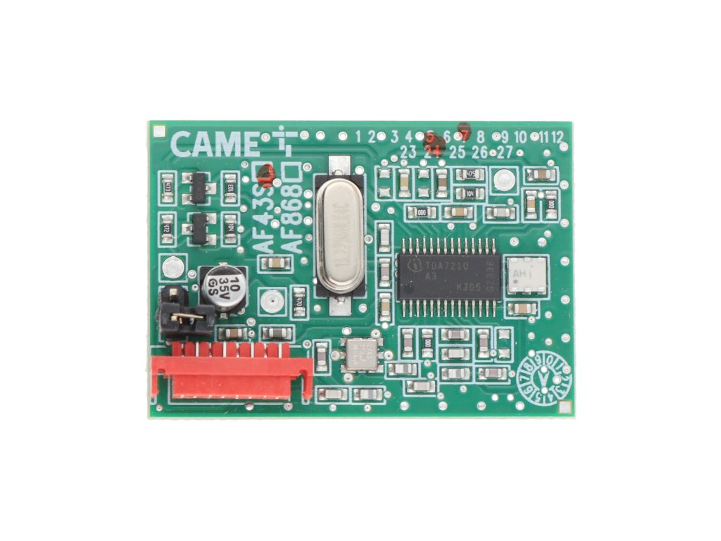 Came AF43S je vysoko spoľahlivý prijímač určený pre pohony brán a garážových dverí od značky Came. Tento 433,92 MHz dvojkanálový prijímač pracuje v pásme s pevným kódom, čo umožňuje spoľahlivé a bezpečné ovládanie pohonov na diaľku pomocou kompatibilných diaľkových ovládačov. Vďaka svojej jednoduchosti je ideálny pre inštaláciu v širokej škále pohonov a automatizačných systémov Came.