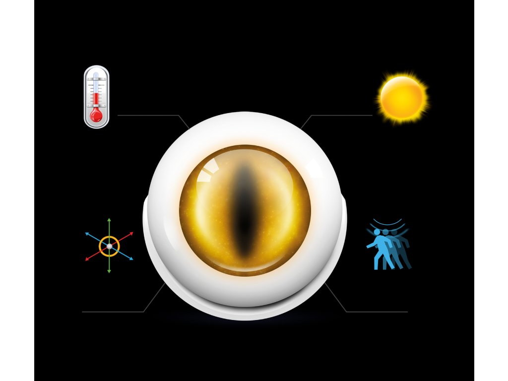 PIR pohybový,teplotný senzor na detekciu intenzity svetla (LUX),senzor vibrácií, pracuje s FIBARO produktami a s vybranými produktami skupiny NICE.