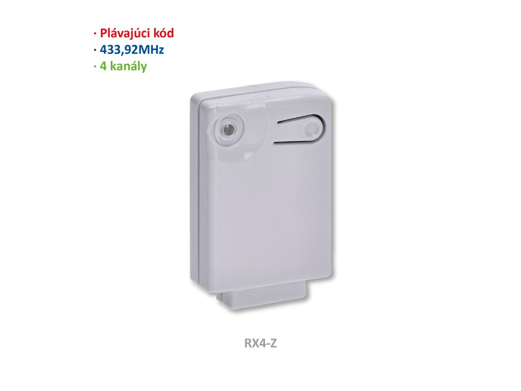 RX4Z (dočasná verzia) prijímač interný 4-kanálový (433MHz), plávajúci kód, pamäť: 400 kódov. Kompatibilny len s elektronikami CT-14AB2-Z