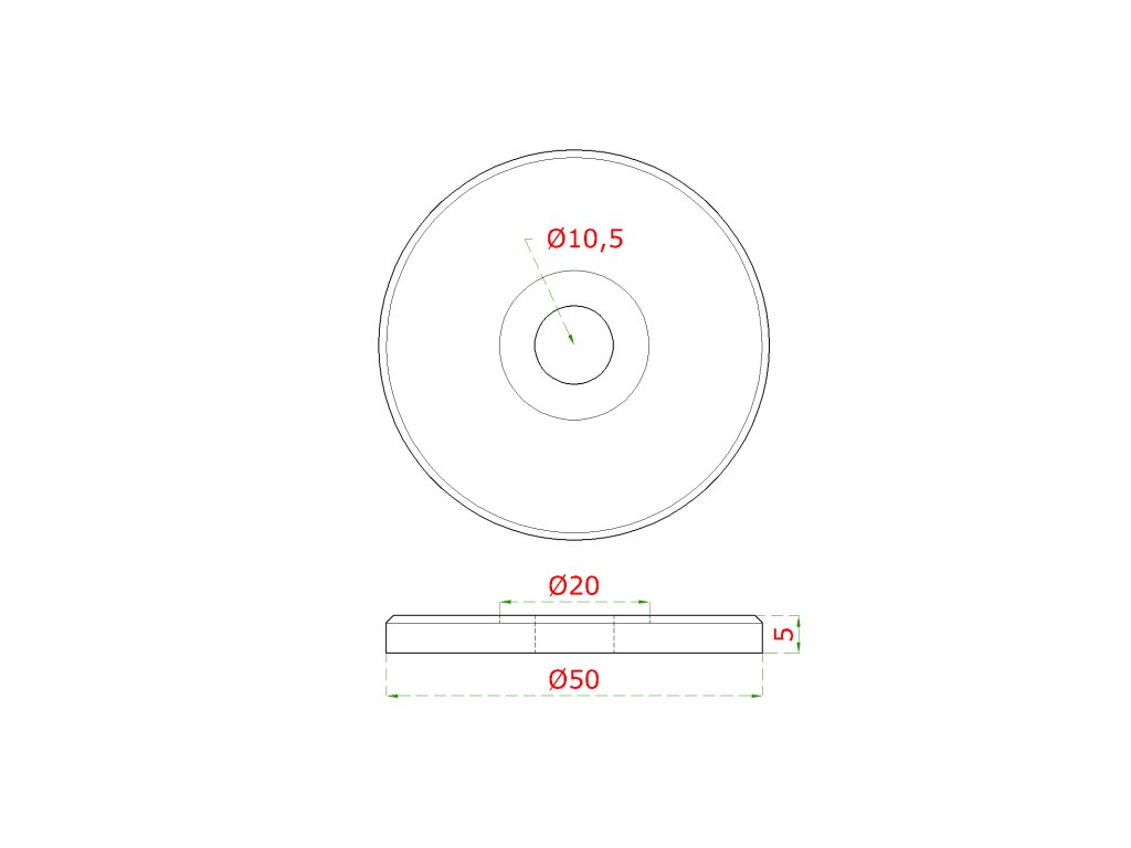 platňa na bočné kotvenie stĺpu (ø 50x5mm) brúsená nerez K320 /AISI304Dodatočné parametre