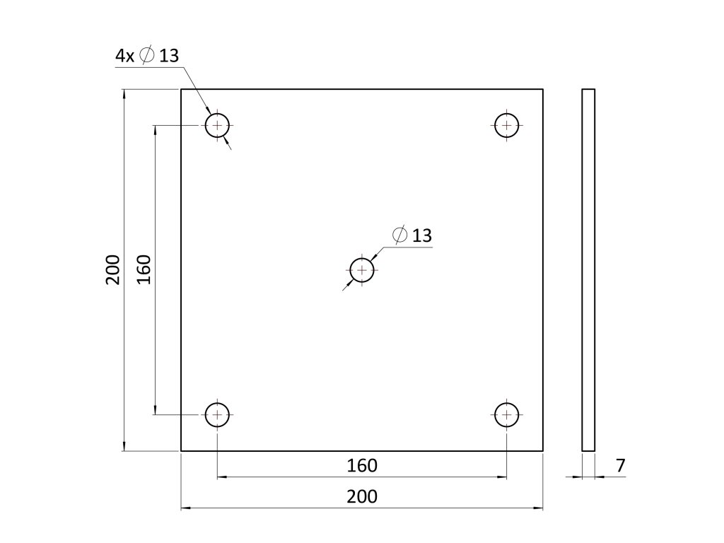 Platňa univerzálna 200x200x6mm s otvormi 13mm, bez povrchovej úpravy