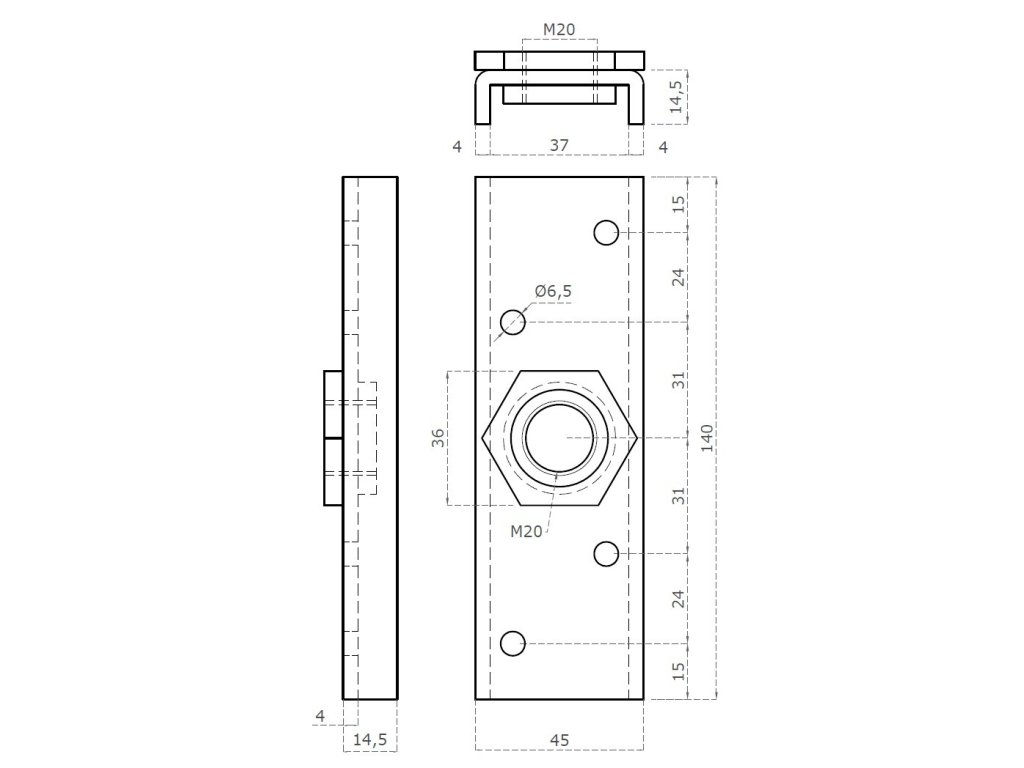 lišta pre uchytenie vozíka C750G, C752G, lisovaná otočná matica, závit M20