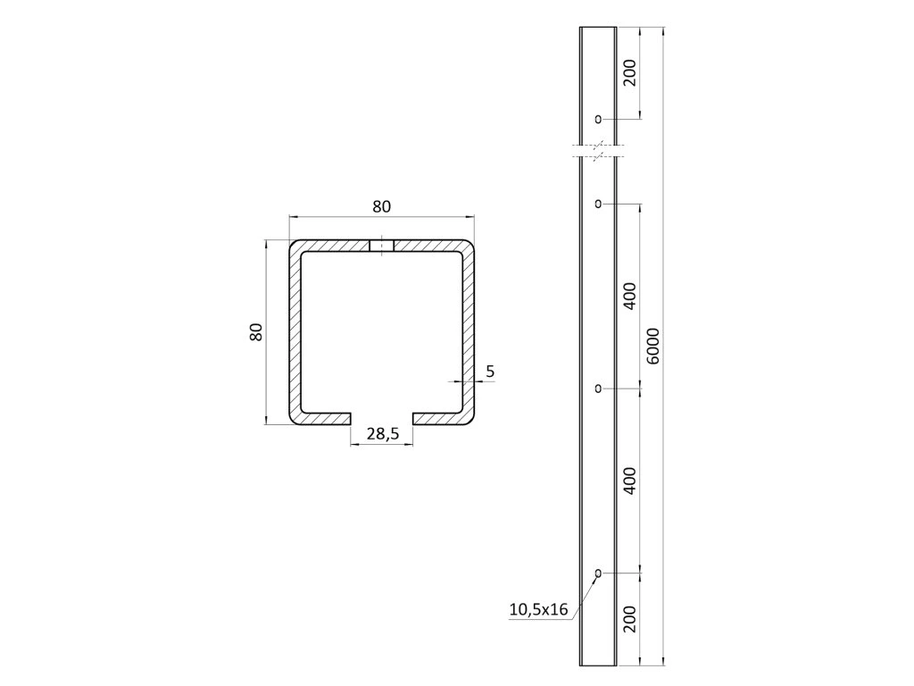 Samonos do 400 kg/7 m, dierovaný profil 80 × 80 × 5 mm, Zn