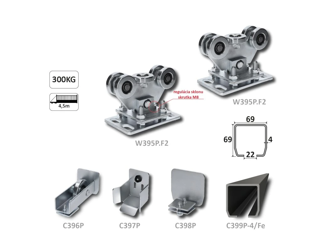 samonosný systém 69x69x4 posuvnej brány do 200kg/4,5m otvor (C399P-4/Fe 1x6m čierný profil,1x W-SET69F2)