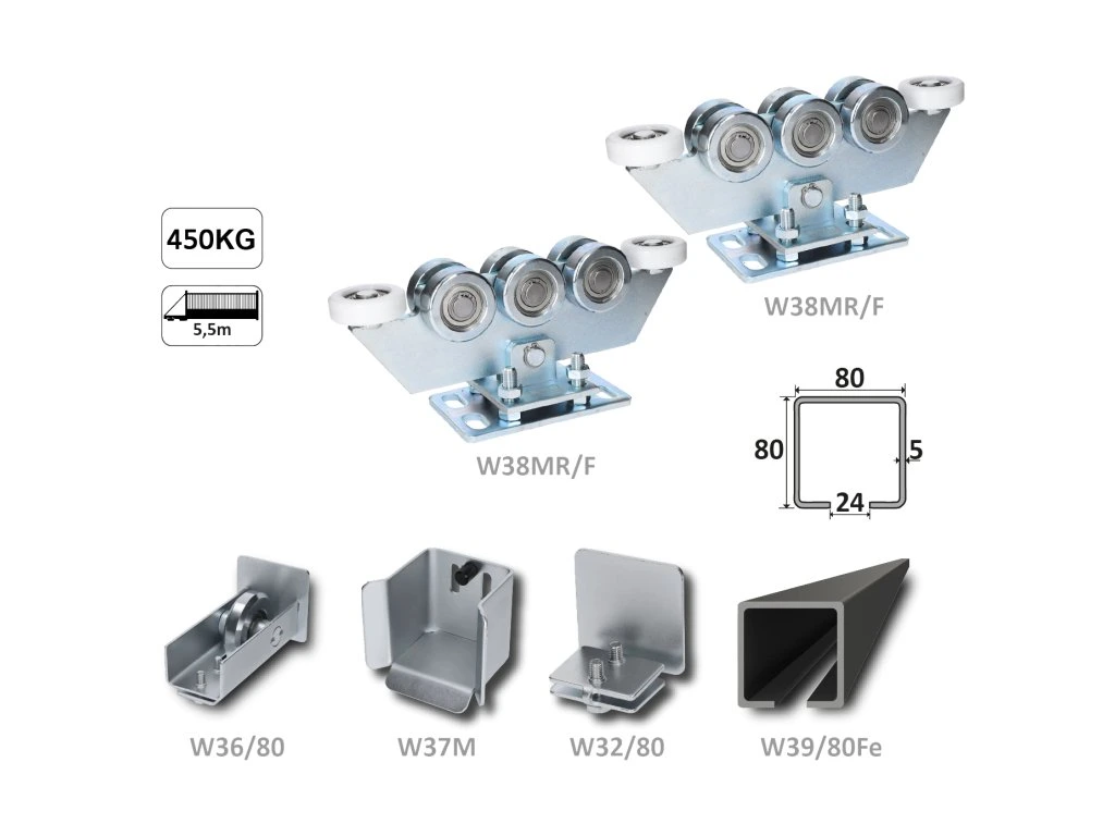 Samonosný systém pre posuvné brány do 400kg, profil 80x80x5mm W39/80Fe 6m, 2x W38MR/F, 1x W37M, 1x W36/80, 1x W32/80
