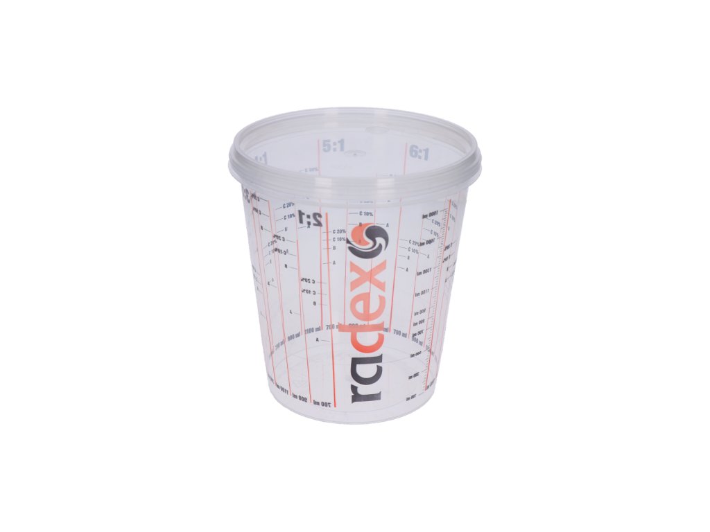 Radex miešací kelímok 2300mlJednorazový priehľadný kelímok na miešanie farieb s viečkom na prípravu farby z polypropylénu.