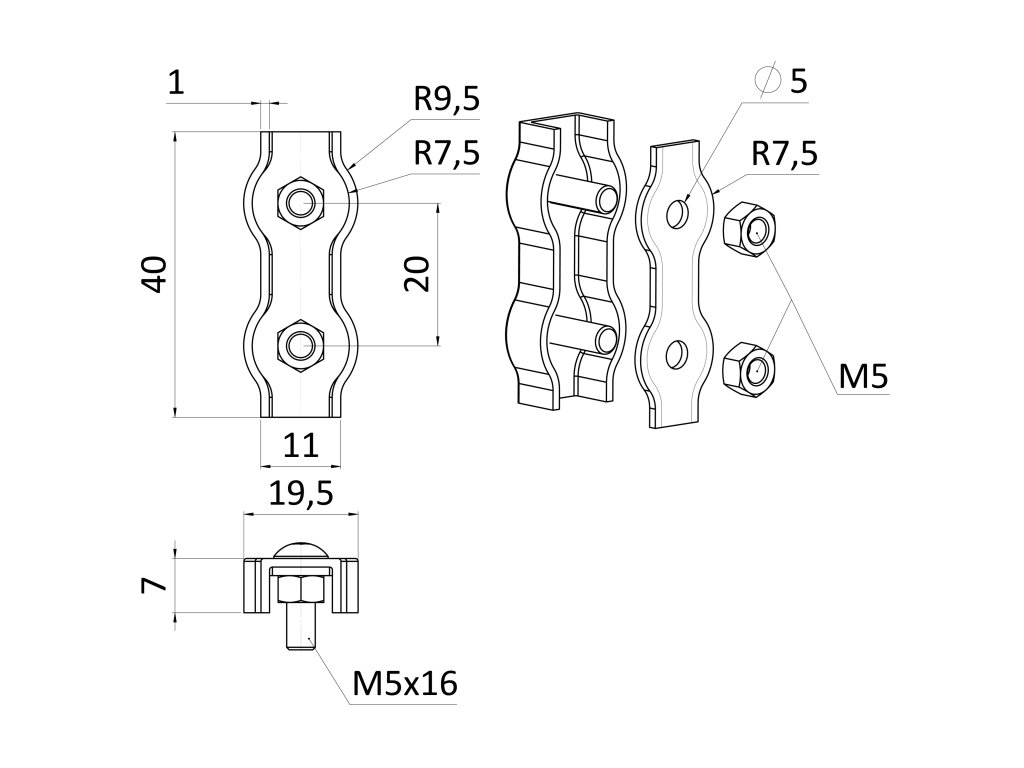lanková spona - dvojtiá pre nerezové lanko 4mm, brúsená nerez K320/ AISI304Dodatočné parametre