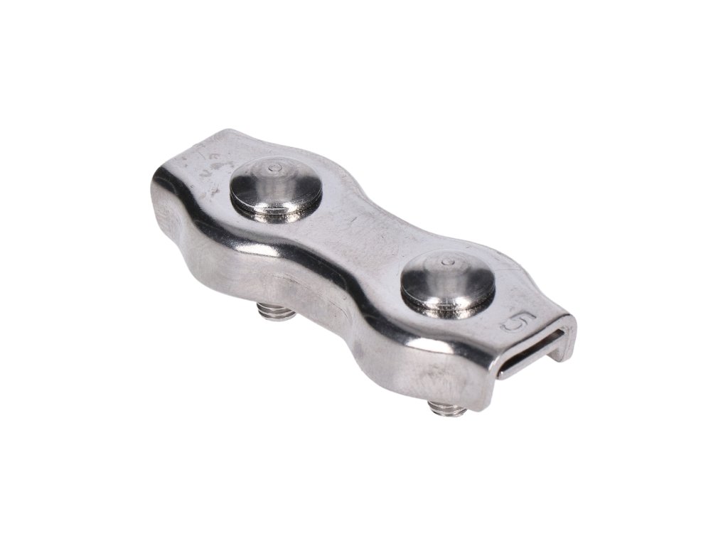 lanková svorka - dvojitá (duplex) pre nerezové lanko 5mm, brúsená nerez K320/ AISI304