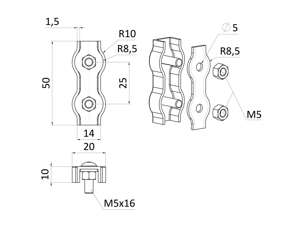 lanková spona - dvojitá pre nerezové lanko 5mm, brúsená nerez K320/ AISI304Dodatočné parametre