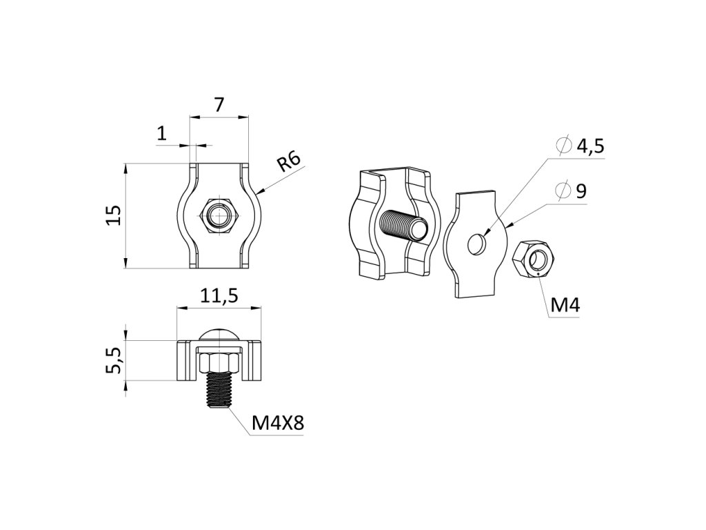 lanková svorka - simplex pre nerezové lanko 2mm, brúsená nerez K320/ AISI304