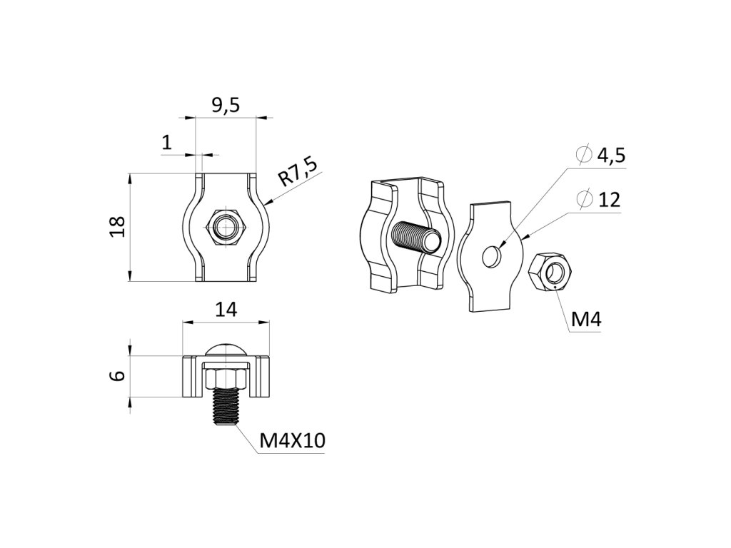 lanková svorka - simplex pre nerezové lanko 3mm, brúsená nerez K320/ AISI304
