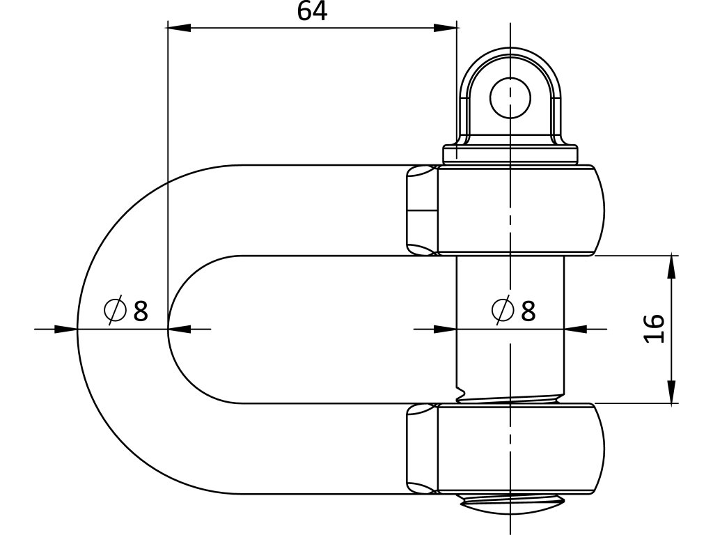 strmeň d=8mm, D-typ dlhý, Art.8259, A4/AISI316