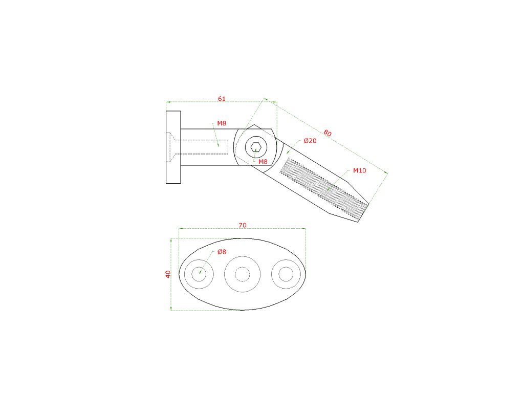 kotvenie vrchné (stena / tiahlo) na sklenený prístrešok (závit:M10), brúsená nerez K320 /AISI316Dodatočné parametre