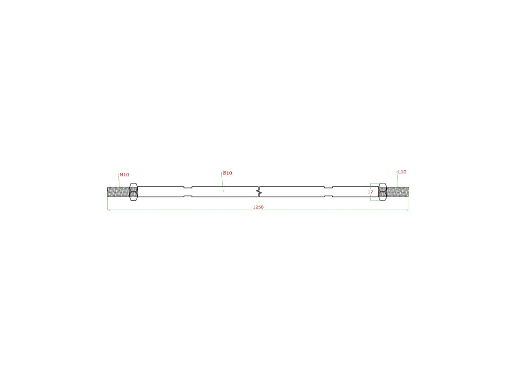tiahlo pre kotvenie skleneného prístrešku (ø 10mm, L:1250mm, závit:M10, L10), brúsená nerez K320 /AISI316Dodatočné parametre