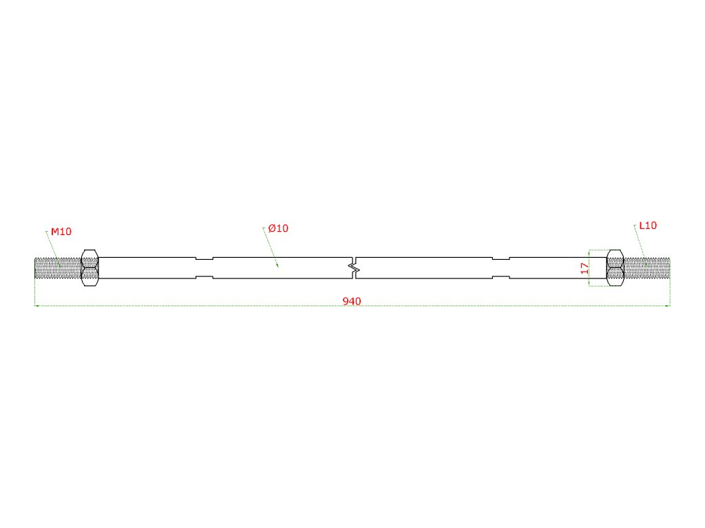tiahlo pre kotvenie skleneného prístrešku (ø 10mm, L:940mm, závit:M10, L10), brúsená nerez K320 /AISI304Dodatočné parametre
