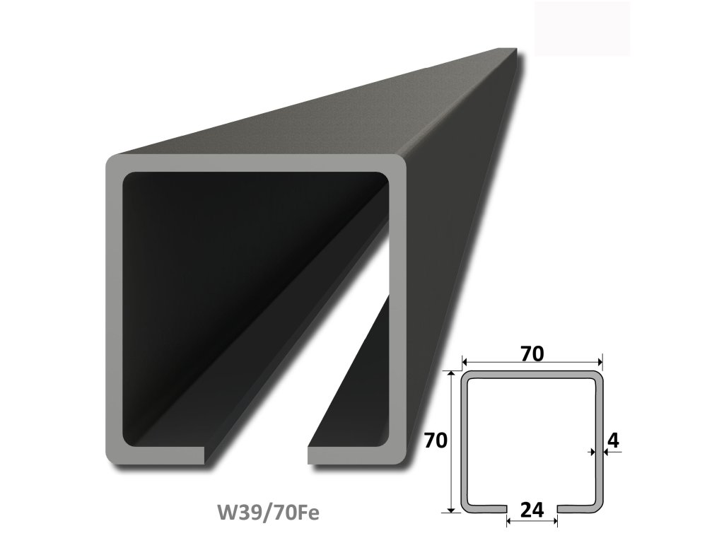 C profil 70x70x4mm čierny Fe, dĺžka 4m
