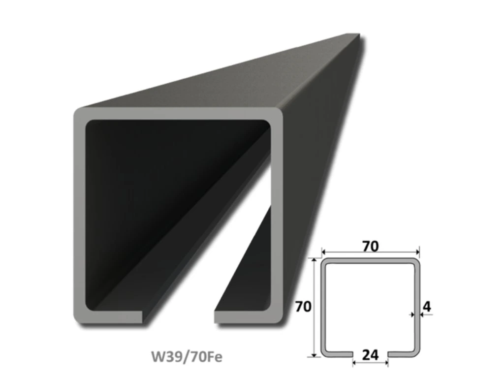 C profil 70x70x4mm L=7000mm čierný Fe pre samonosný systém posuvnej brány