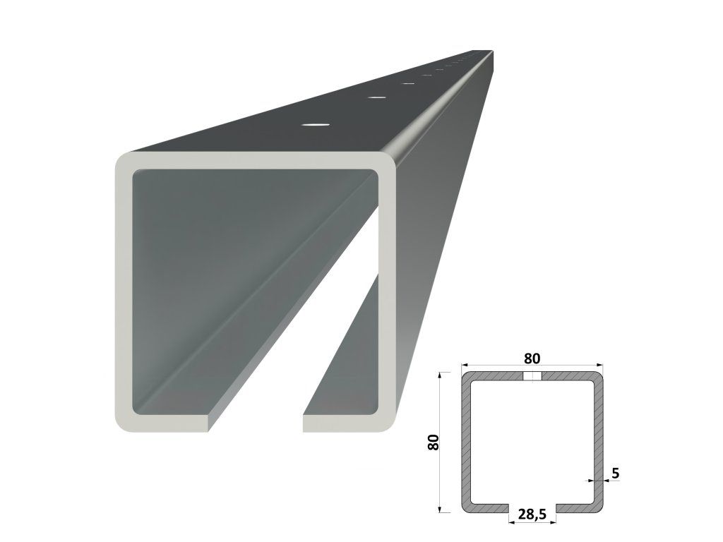 C profil 80x80x5mm s otvormi, pozinkovaný, dĺžka 1m