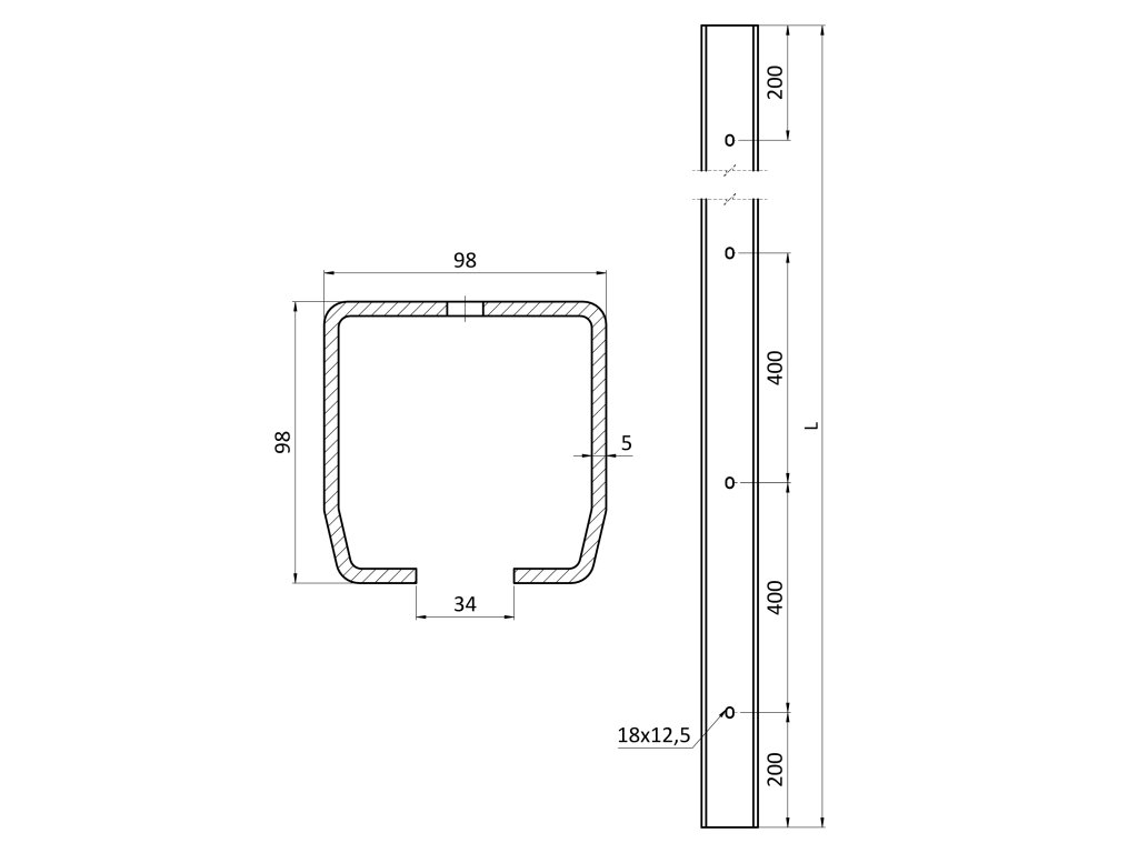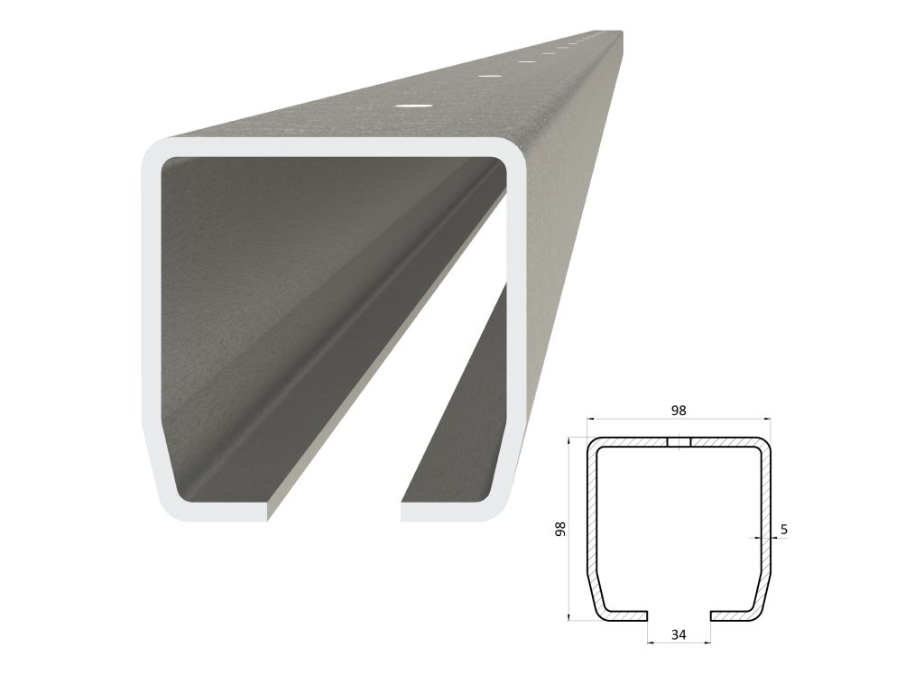 C profil MEDIO 98 x 98 x 5 x 4000 mm s otvormi, pozinkovaný