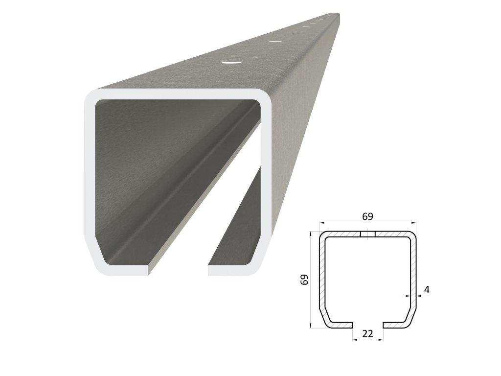 C profil PICOLLO 69 x 69 x 4 x 2000mm s otvormi, pozinkovaný
