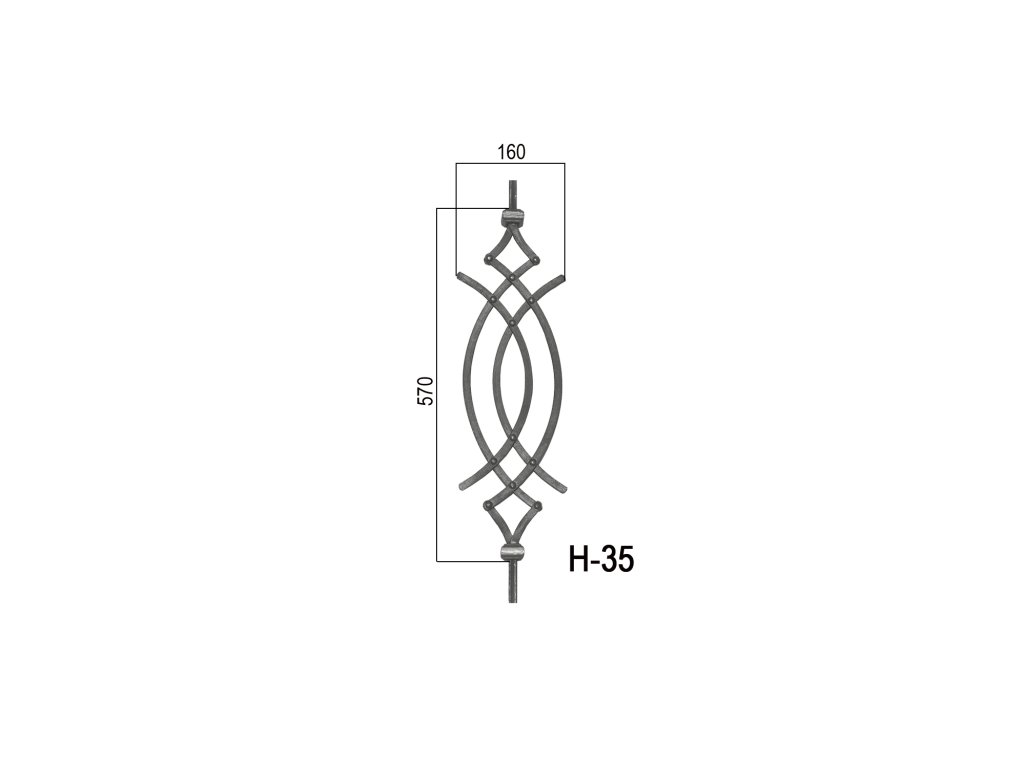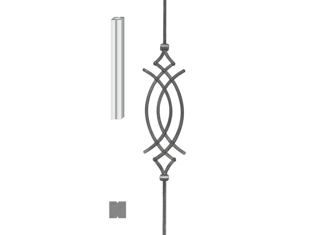 tyč: L-900mm, materiál 12x12mm (ornament: 570x145mm nitovaný 12x6mm)Dodatočné parametre