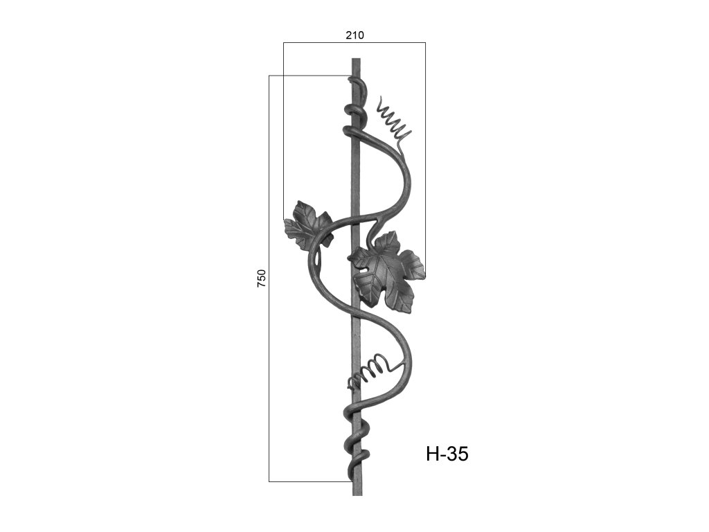 tyč 12x12mm, 900x230 mm s hroznovými listamiDodatočné parametre